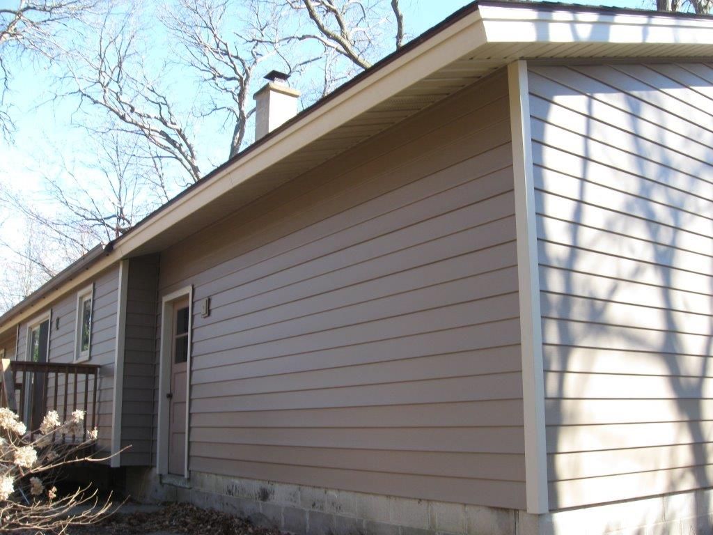 Recent project on 168th Circle in Ham Lake, MN. 6″ Canyon ABC Seamless Steel Siding with Wickertone soffit-fascia and window trims. Great color combination and using the trim color for for the corner posts gives this rambler a nice clean updated look!