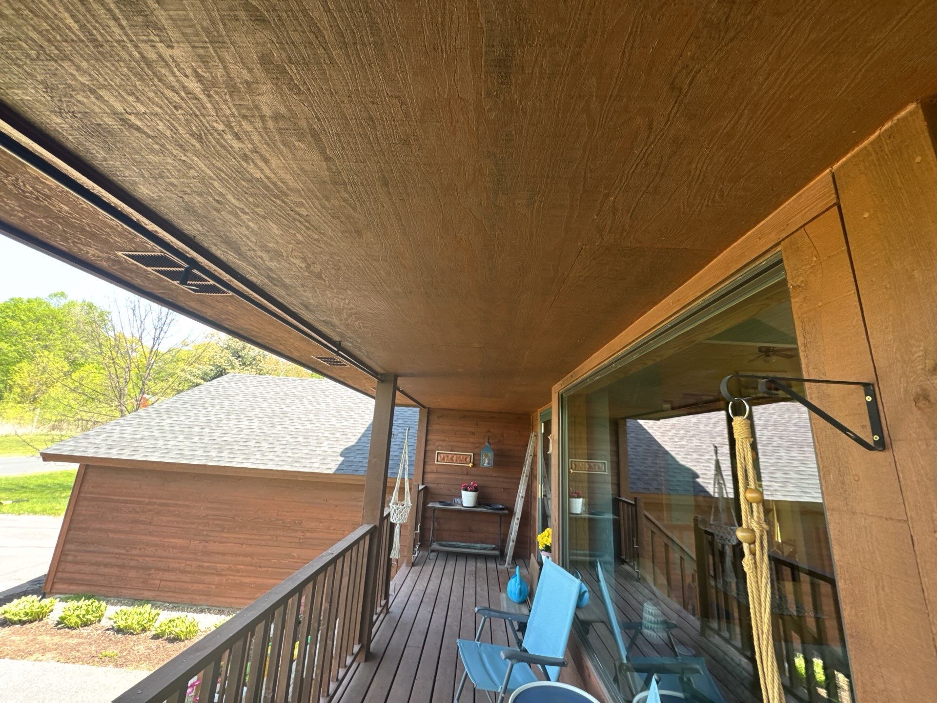 This home also has a very cozy front porch, and we used a new steel shiplap soffit product from EDCO