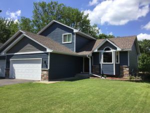 Our latest project finds us in Andover on 142nd Lane. Included was our popular Classic Blue ABC Seamless Steel Siding with Glacier White soffit-fascia, trims and ABC Designer Gutters. In just a week this homeowner turned their home into the best looking house on the street! Note the complimenting colors in the gables, as well as the stone work. Great exterior design teamwork between our rep and the homeowner!