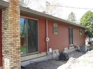 Classic Red ABC Seamless Siding project on 120th Lane in Blaine. Check out the before and after photos – a fresh new look for this home! Also included was Terra Tone soffit-fascia and ABC Seamless Designer Gutters with gutter covers (photo prior to gutter installation).