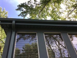 Also included was our 5″ aluminum seamless gutters with gutter covers to protect their home. Note the oversized downspouts to handle the biggest downpours.
