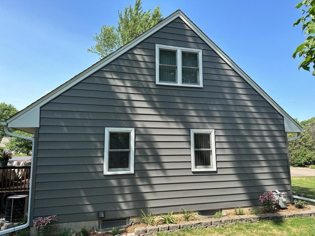 Recent siding project in on Kirkwood Lane in Plymouth . The Charcoal Gray ABC Seamless Siding gives this home a nice, new modern look! See before and after photos below.