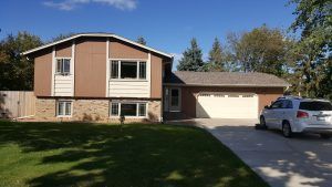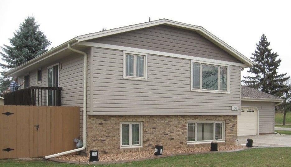 Latest ABC Seamless Siding project on Uplander Street in Coon Rapids. The home makeover included a great color combination of Sand Tone for the siding with Timber on the siding for the gables. Also included was Desert Tone soffit-fascia and trims.