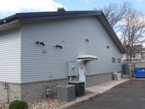 Recent ABC Seamless Steel Siding project at the Mounds View Animal Hospital on Highway 10. The hospital was resided in one of our new Duck Matte siding colors of Driftwood Gray. Siding the hospital involved several ABC Seamless Crew Members as there were panels as long as 93 feet – NO SEAMS!