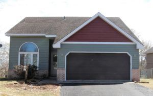 Our latest siding project on Flintwood Street in Coon Rapids. Included was our ABC Seamless Steel Siding in one of our new Duck Matte colors of Sage. Note the Classic Red shakes on the gables to give this home a great new modern look! Also included was Glacier White steel soffit-fascia, and our steel ABC Seamless Designer Gutters (photo prior to gutter install).
