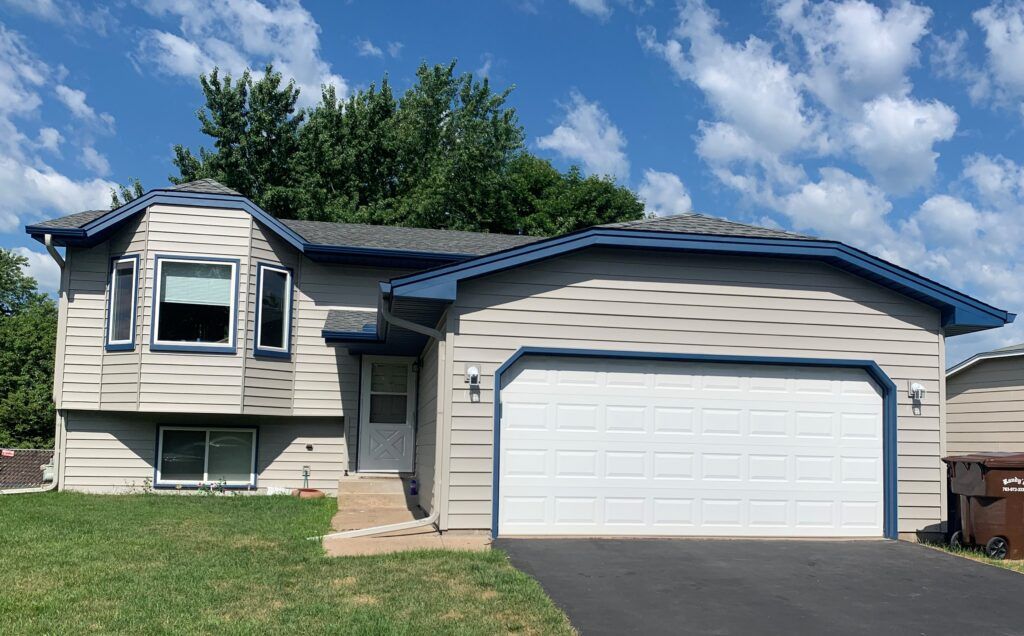New siding project in our hometown of Maple Grove on 89th Circle! This project included some new colors from the ABC Seamless Prism Collection. 6″ Tuscan for their new seamless steel siding with Sapphire for the soffit-fascia and trim work. This really gives their home a new contemporary look!